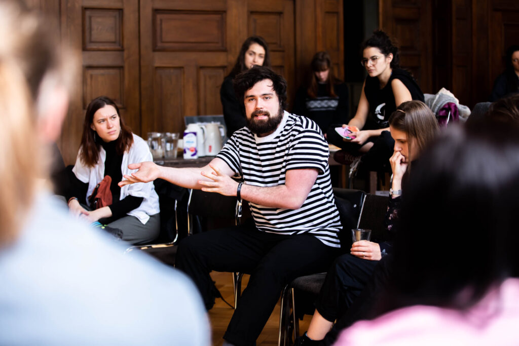 Výzkum Dávida Somló zkoumá, jak může prostorová kompozice v performanci formovat diváckou pozornost, vnímání a vztahové zkušenosti, přičemž překračuje tradiční žánry. V této diskusi Somló představí poznatky ze své disertační práce v rámci programu PhD-in-Practice a analyzuje, jak performativní prostorové intervence – od zvukových choreografií ve veřejném prostoru až po participativní pohybové partitury – mohou osvobodit diváckou pozornost a narušit tradiční dynamiku mezi performerem a divákem.